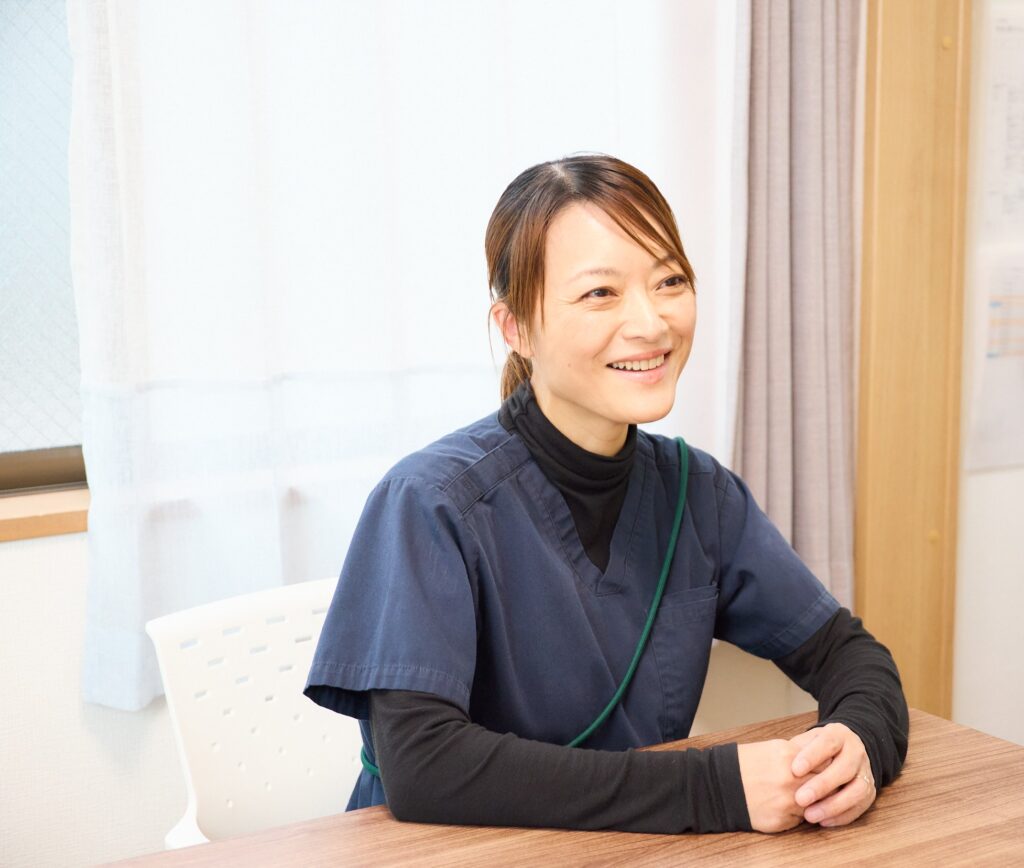 「私は子どもがまだ小学生で、学校行事や体調不良もあります。でも所長さんが勤務をすごく配慮してくださって、短時間だけ抜けることもできます。病院勤務では難しかったので、とても助けられています」